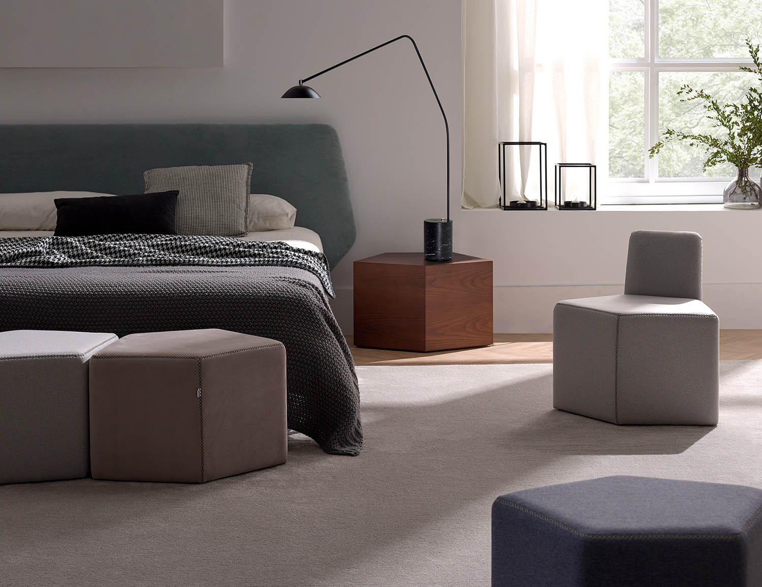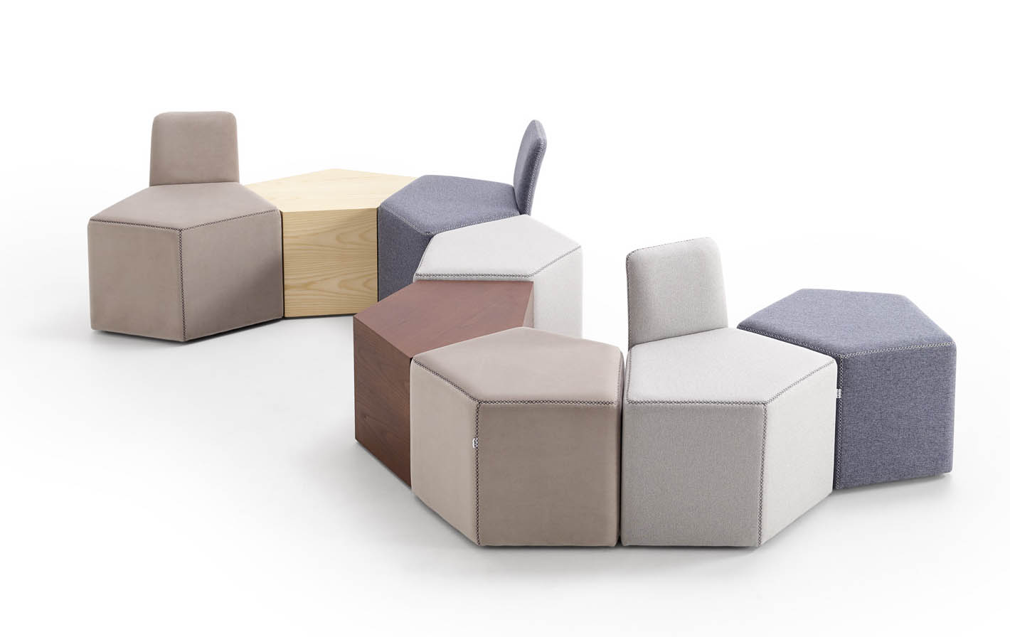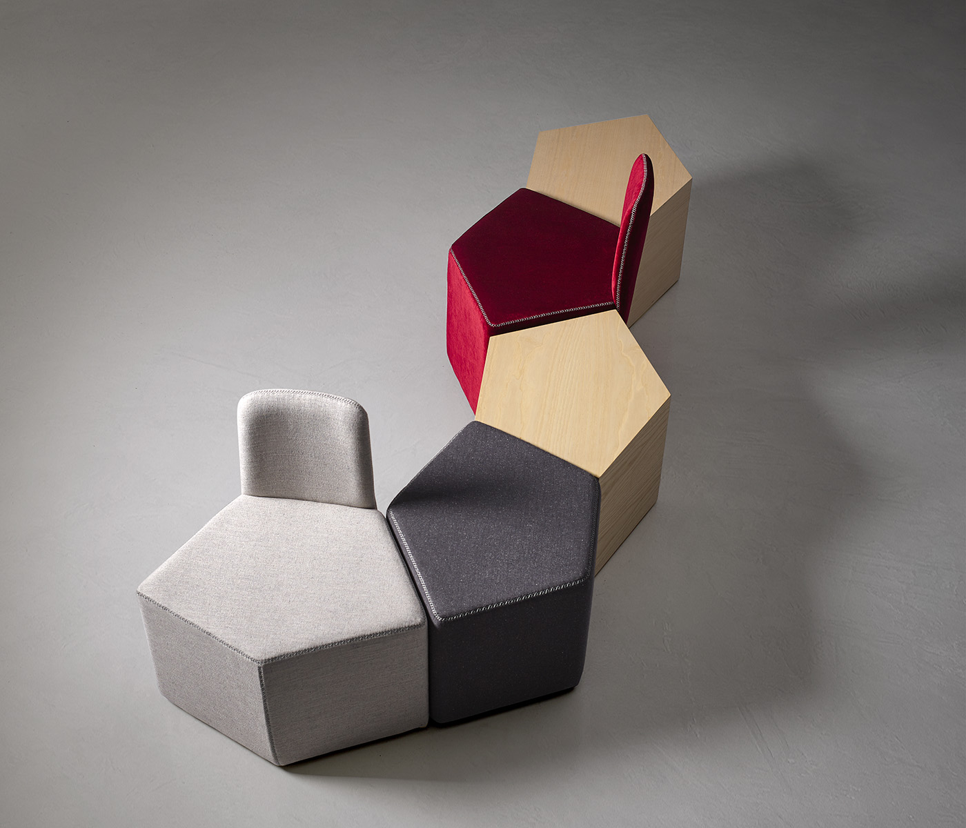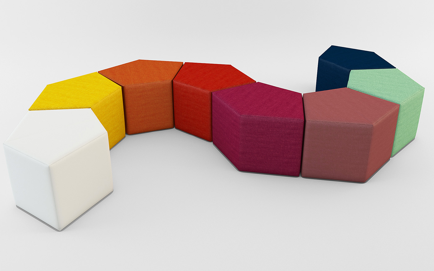 Es un puzzle con el que jugar a crear la forma que más se adapte a las necesidades del usuario. Las posibilidades son infinitas, pudiéndose emplear como banco, puf, butaca o incluso mesita auxiliar.