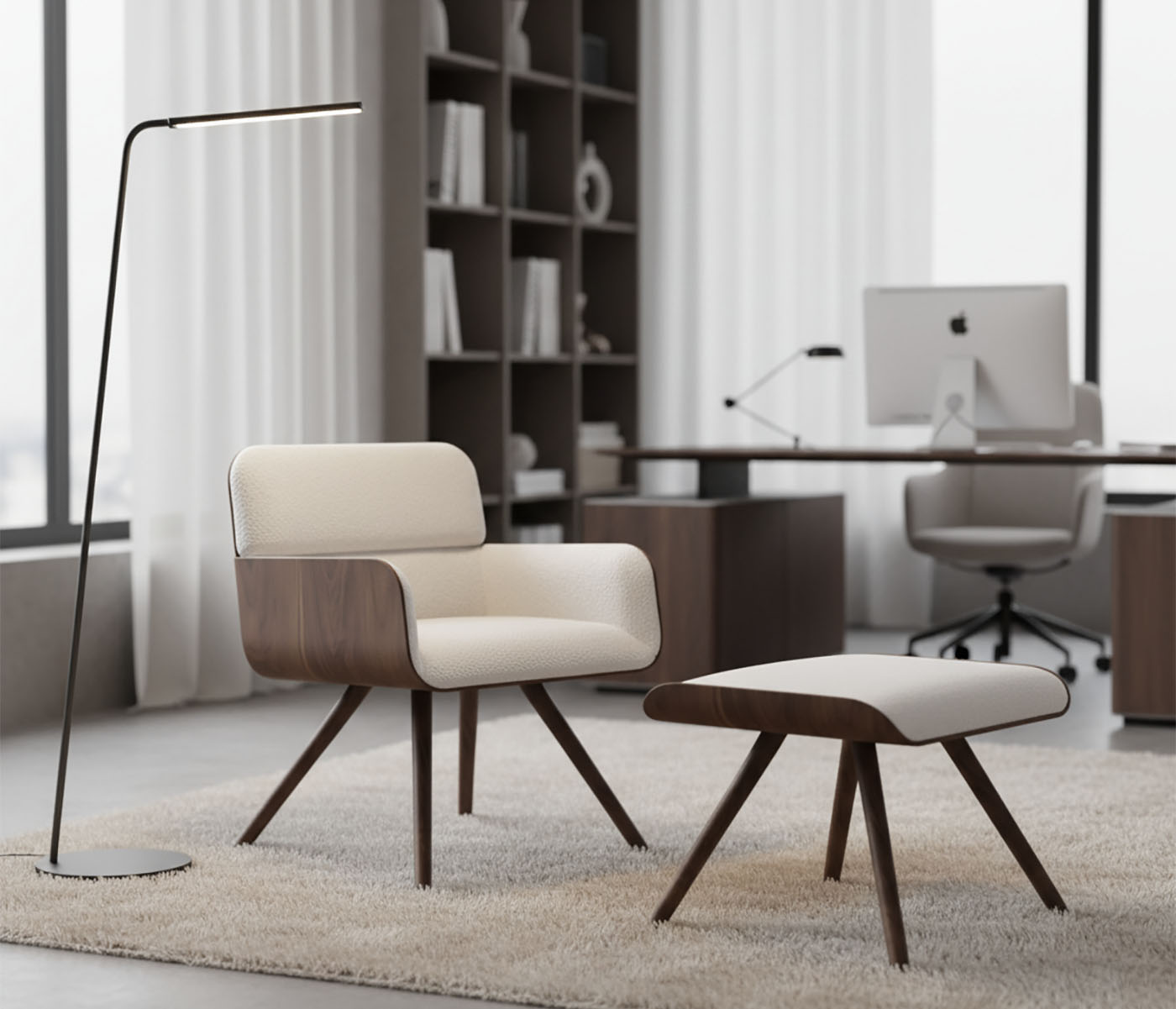 CHIC combines enveloping shapes and balanced proportions with soft, rounded lines. Famo's mastery allows the junctions between the seams, the upholstery, and the wooden shell that envelops the lower part of the armchair to align perfectly.