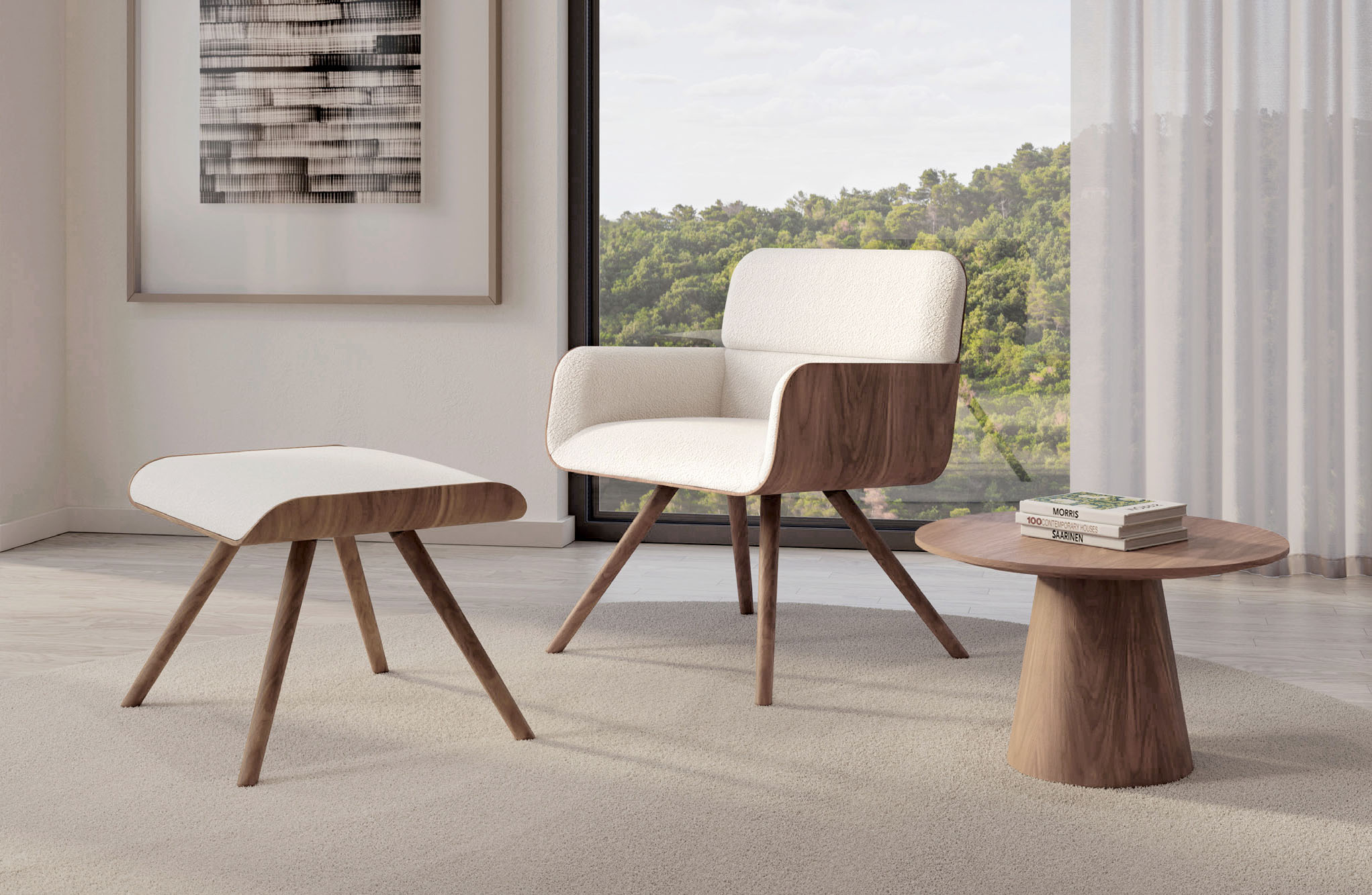Its three different bases and the variety of finishes make it easy for the armchair to naturally integrate into classic or contemporary settings without losing its identity. It also features a footrest as an accessory to increase comfort.
