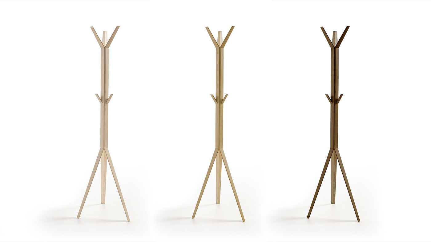 To create this coat rack we have started by dividing a hexagon into three equal parts, three rounded diamonds that join and separate forming the legs, the structure and the hangers in the floor version. With this simple geometry we achieve to create a stable and functional coat rack. We rounded the edges to obtain a more pleasant result, which invites to be used, to be touched.