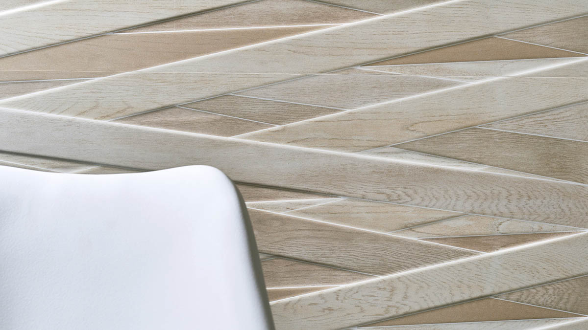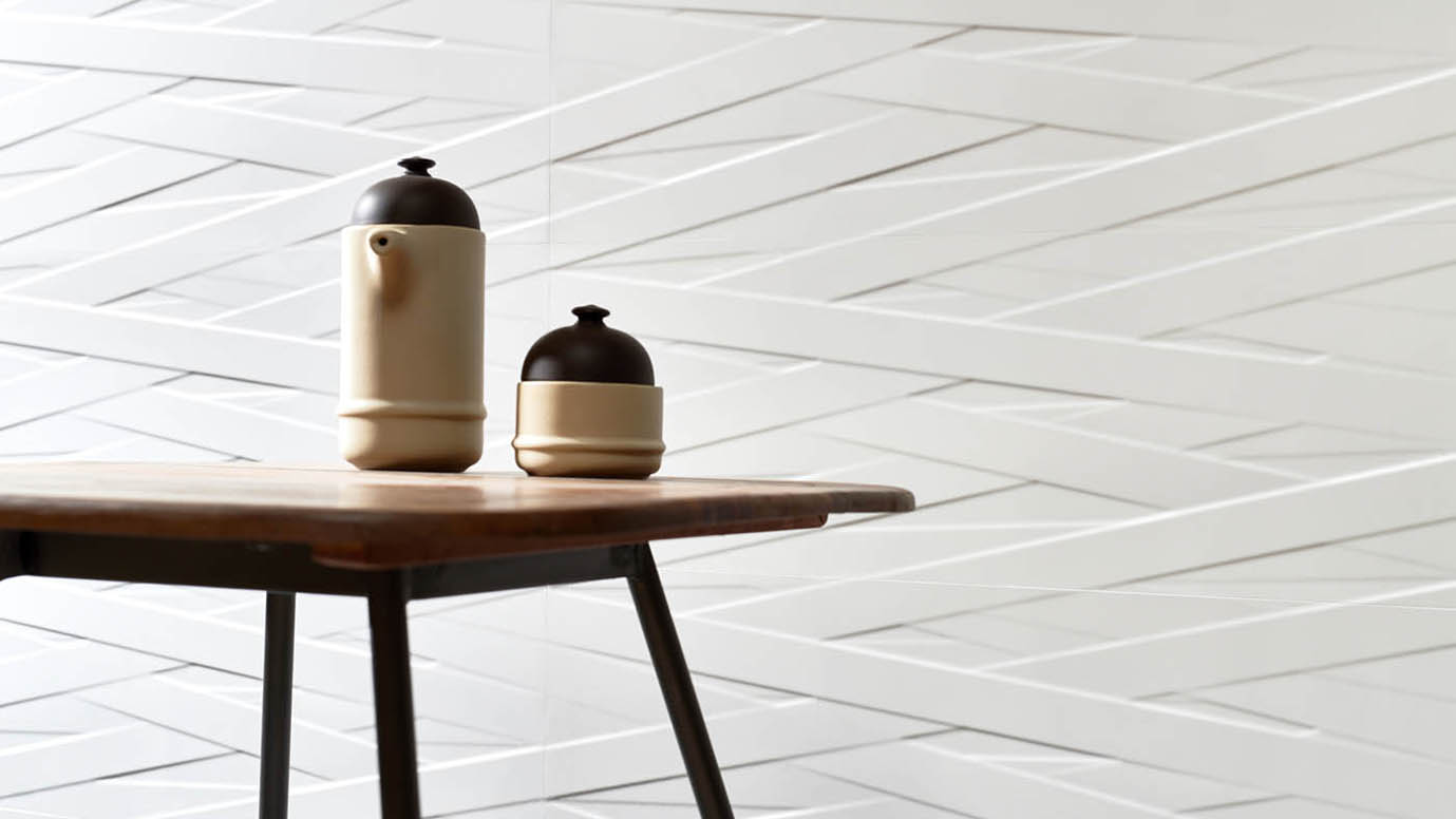 Dsignio took the way in which birds build their nests as its source of inspiration, creating a surface decorated with a series of interlacing ribbons. These ribbons run from one tile to another, forming a fascinating interwoven pattern, emphasized by the slight relief texture of the tiles and colours of each ribbon.