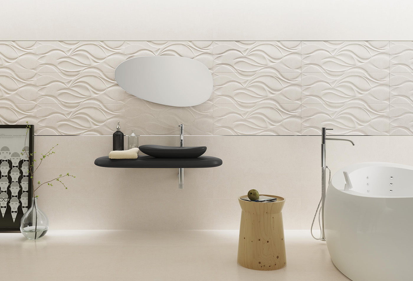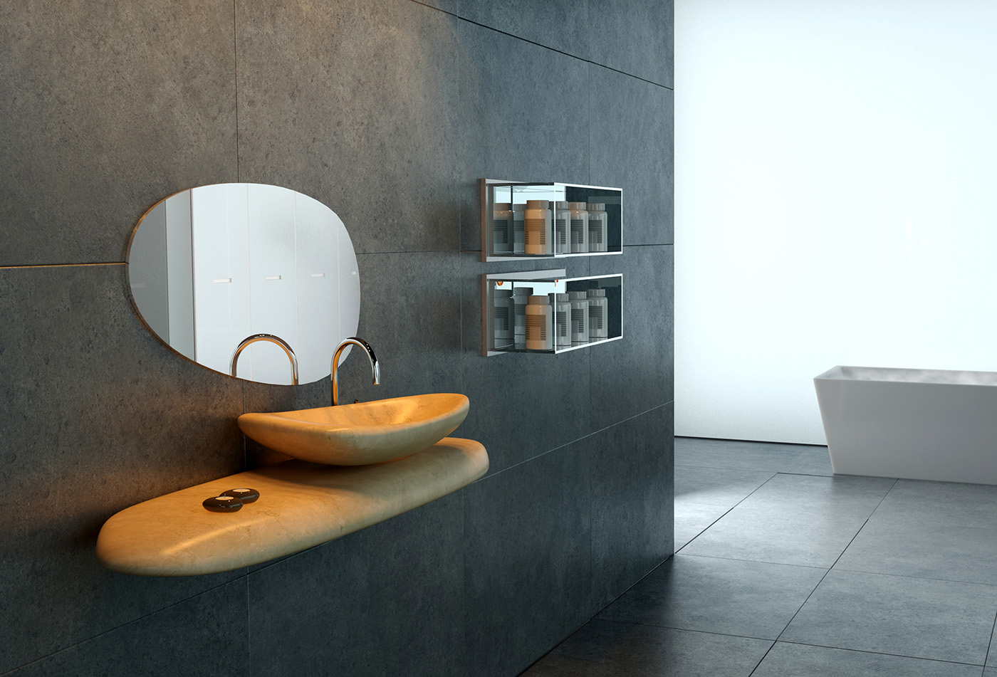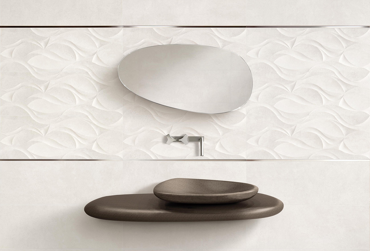 The round shapes caused by erosion made us think about a sink like a stone worn out by streams of water, and with a form as organic and enjoyable as river stones.